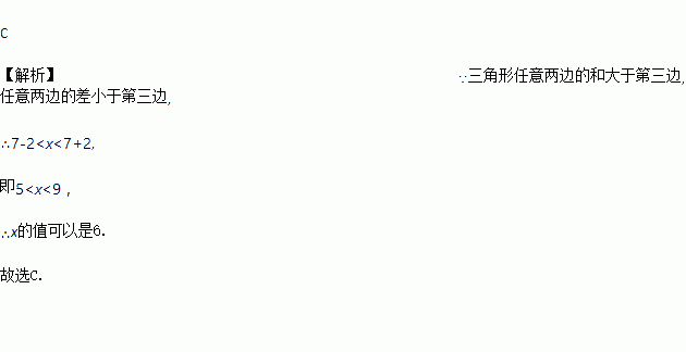 长度分别为2,7,x的三条线段能组成一个三角形,x的值可以是( )