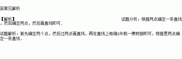 3月12日,团支部书记小颖带领全体团员参加植树活动,有一任务是在长25米的公路段旁栽一排树苗,每棵树的间距为5米,可他们手中只有一圈长20米的皮尺,怎样栽才能保证树苗在一条直线上,请你帮忙出出主意.