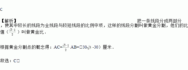 乐器上的一根琴弦AB=60厘米,两个端点A,B固定在乐器板面上,支撑点C是AB的黄金分割点(AC>BC),则AC的长为( )