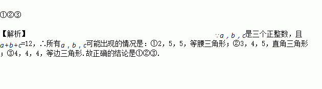 已知a,b,c为三个正整数,如果a+b+c=12,那么以a,b,c为边能组成的三角形是:①等腰三角形,②等边三角形,③直角三角形,④钝角三角形.以上结论正确的是______.(只填序号)