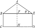 某工厂接受一批支援四川省汶川灾区抗震救灾帐篷的生产任务.根据要求,帐篷的一个横截面框架由等腰三角形和矩形组成(如图所示).已知等腰△ABE的底角∠AEB=θ,且tanθ=