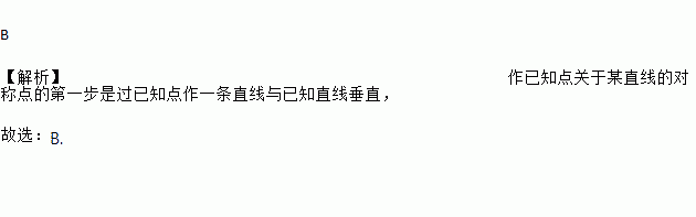 B 【解析】作已知点关于某直线的对称点的第一步是过已知点作一条直线与已知直线垂直, 故选:B.