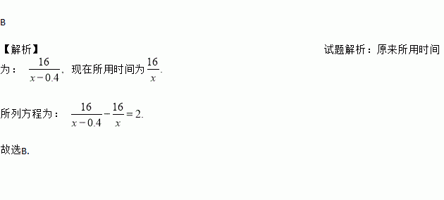今年初,我国南方出现特大雪灾,我市某汽车运输公司立即承担了运送16万吨煤炭到包头火车站的救灾任务,为加快速度,实际每天运煤比原计划每天多0.4万吨,结果提前2天完成任务,问实际每天运煤多少万吨,若设实际每天运煤x万吨,则依据题意列出的方程为( )