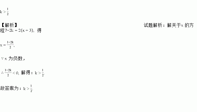 关于x的方程7-2k=2(x+3)的解为负数,则k的取值范围是__________.