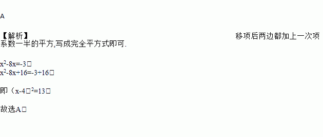 用配方法解一元二次方程x2-8x+3=0,此方程可化为( )