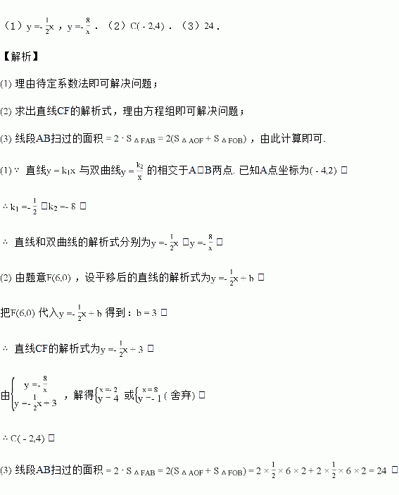 沿x轴向右平移6个单位后,与双曲线在第二象限内交于点C,与x轴交于点F,求点C的坐标.![]()