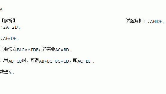 如图,AE∥DF,AE=DF,要使△EAC≌△FDB,需要添加下列选项中的( )