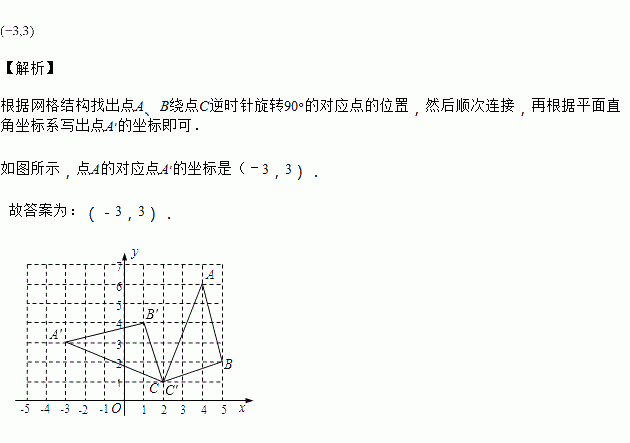 如图,的顶点坐标分别为、、,如果将绕点按逆时针方向旋转,得到,那么点的对应点的坐标是________.