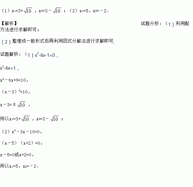 (1)x2﹣6x﹣1=0;