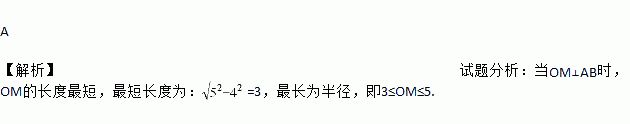 如图,⊙O的半径为5,弦AB=8,M是弦AB上的动点,则OM不可能为( )