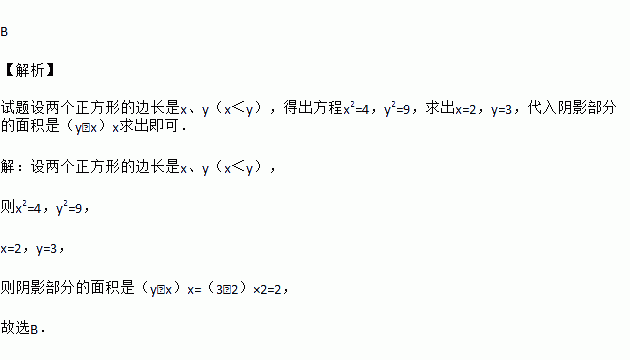 如图,长方形内有两个相邻的正方形,面积分别为4和9,那么图中阴影部分的面积为( )