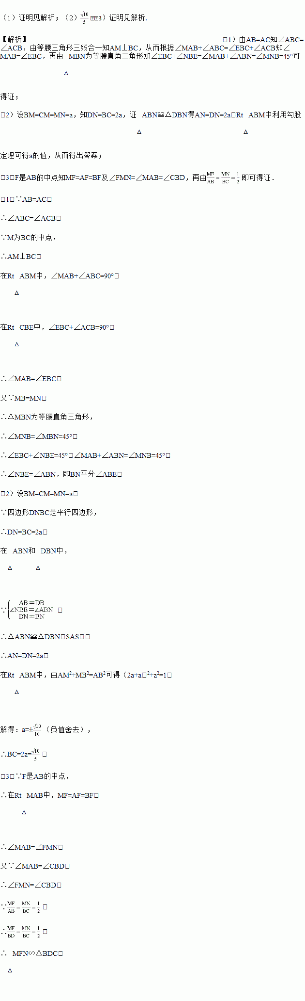 (1)求证:BN平分∠ABE;