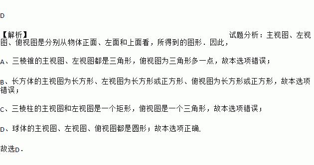 A. 三棱锥 B. 长方体 C. 三棱柱 D. 球体
