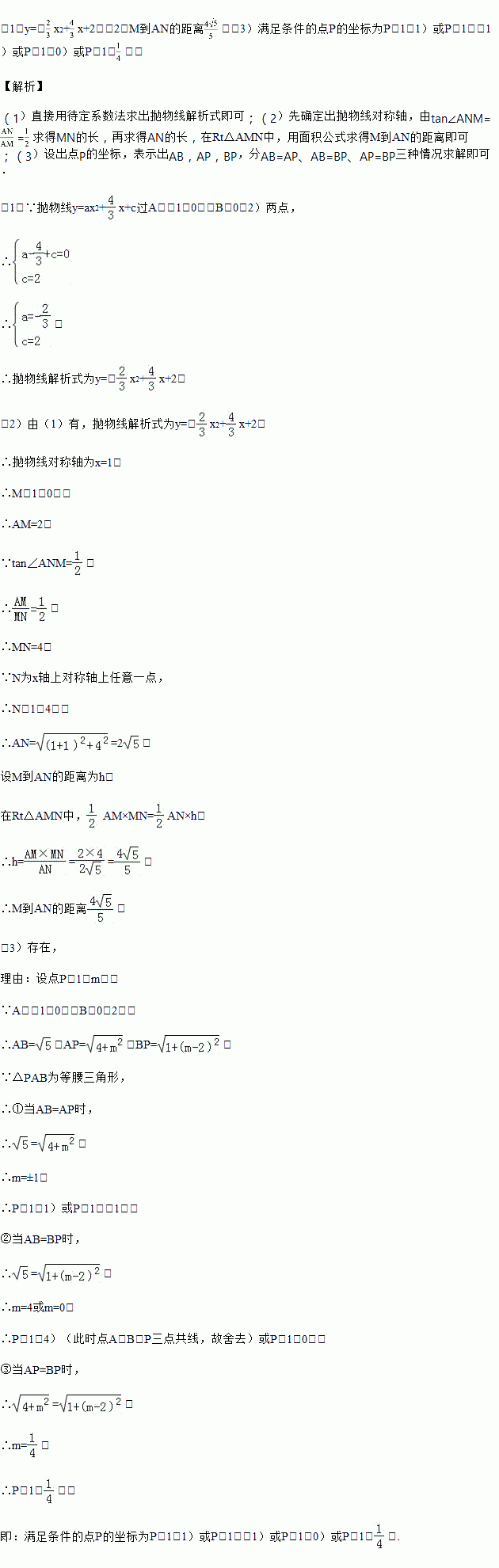 (2)M为抛物线对称轴与x轴的交点,N为x轴上对称轴上任意一点,若tan∠ANM=