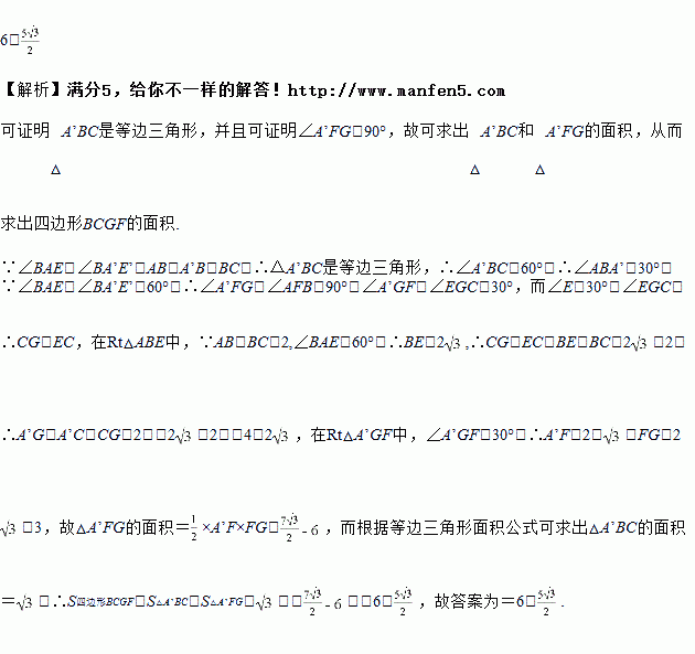 如图,把正方形ABCD和Rt△ABE重叠在一起,其中AB=2,∠BAE=60°,若把Rt△ABE绕直角顶点B按顺时针方向旋转,使斜边AE恰好经过正方形的顶点C,得到Rt△A′BE′,AE与A′B、A′E分别相交于点F,G,那么△ABE与△A′BE′的重叠部分(即四边形BCGF部分)的面积为_____.