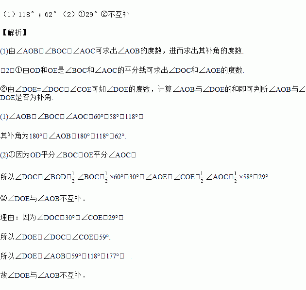 如图,OD平分∠BOC,OE平分∠AOC,∠BOC=60°,∠AOC=58°.