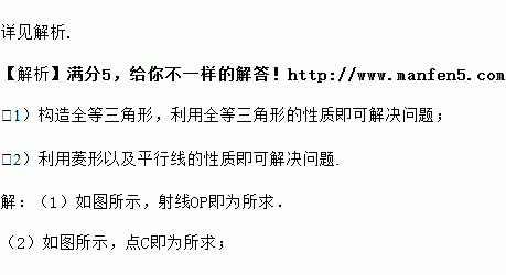 图①、图②都是由边长为1的小菱形构成的网格,每个小菱形的顶点称为格点.点O,M,N,A,B均在格点上,请仅用无刻度直尺在网格中完成下列画图.