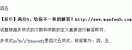 多项式2x3-x2y2-3xy+x-1是__________次_________项式.