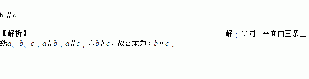 在同一平面内,三条直线、、,若∥,∥,则________.