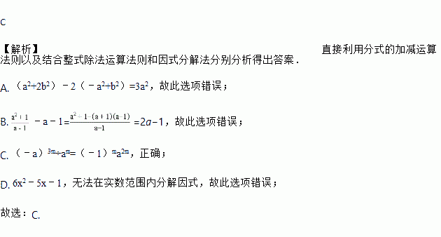 C. (﹣a)3m÷am=(﹣1)ma2m D. 6x2﹣5x﹣1=(2x﹣1)(3x﹣1)