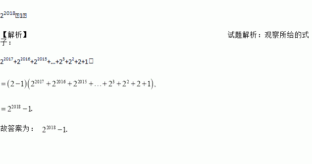 根据(x﹣1)(x+1)=x2﹣1,(x﹣1)(x2+x+1)=x3﹣1,(x﹣1)(x3+x2+x+1)=x4﹣1,…的规律,则可以得出22017+22016+22015+…+23+22+2+1的结果可以表示为_____.