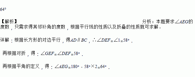 如图,把一张长方形纸条沿折叠,若,则=_________