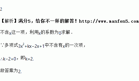 若多项式3x2+kx-2x+1(k为常数)中不含有x的一次项,则k=__________.