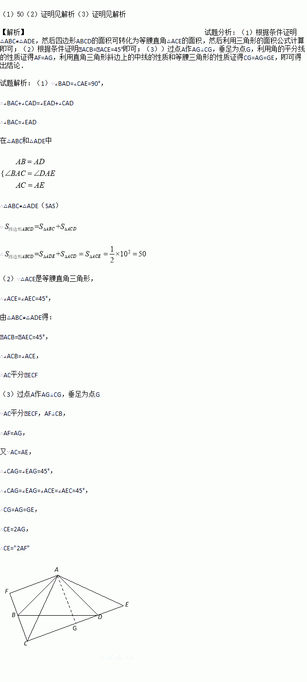 如图,∠BAD=∠CAE=90o,AB=AD,AE=AC, AF⊥CF,垂足为F.
