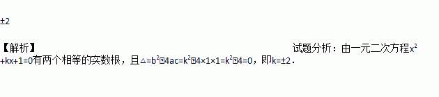已知关于x的一元二次方程x2 +kx +1 =0有两个相等的实数根,则k =______。