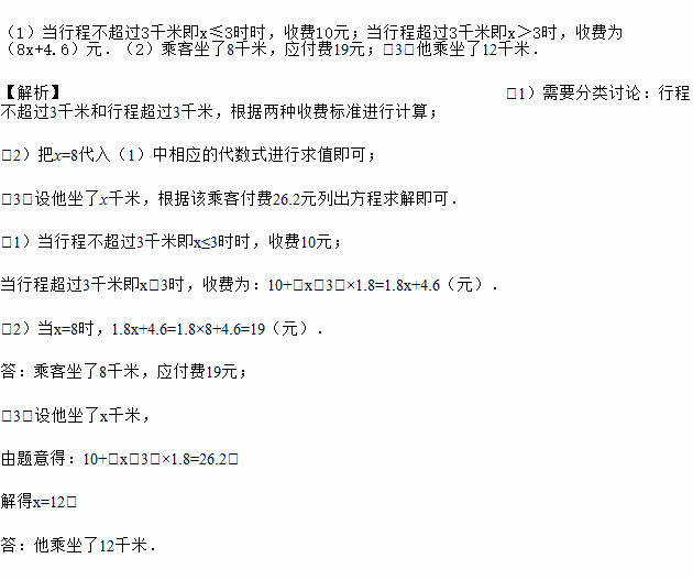 (3)如果该乘客付费26.2元,他坐了多少千米?