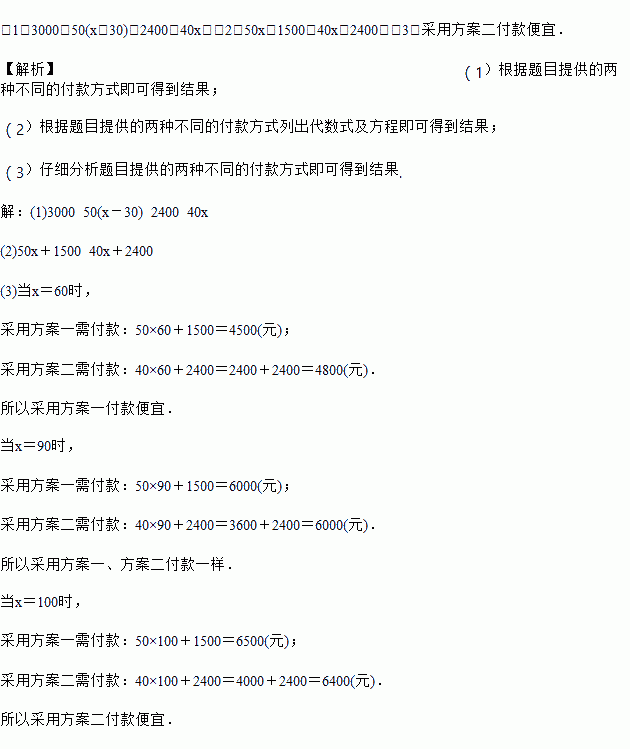 £¨3£©Ä³¹«Ë¾ÏëÂòTÐô60¼þ£¬90¼þ£¬100¼þʱ£¬Çëͨ¹ý¼ÆËã˵Ã÷·Ö±ð²ÉÓÃÄÄÖÖ·½°¸¸¶¿î±ãÒË£®