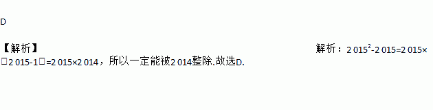 D 【解析】解析:2 0152-2 015=2 015×(2 015-1)=2 015×2 014,所以一定能被2 014整除.故选D.