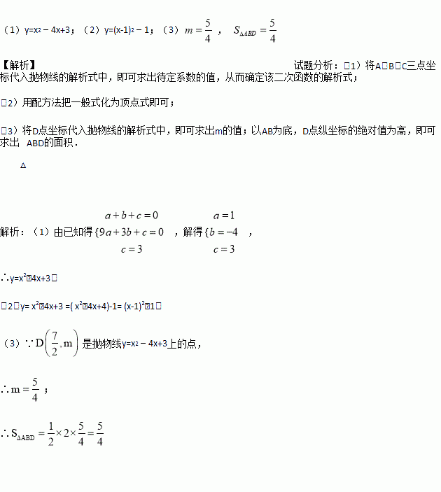 (3)若点D(3.5,m)是抛物线y=ax2+bx+c上的一点,请求出m的值,并求出此时△ABD的面积.