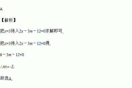 已知关于x的方程2x﹣3m﹣12=0的解是x=3,则m的值为( )