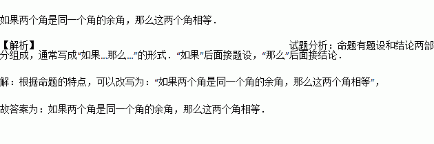 把命题“同角的余角相等”改写成“如果…那么…”的形式 .