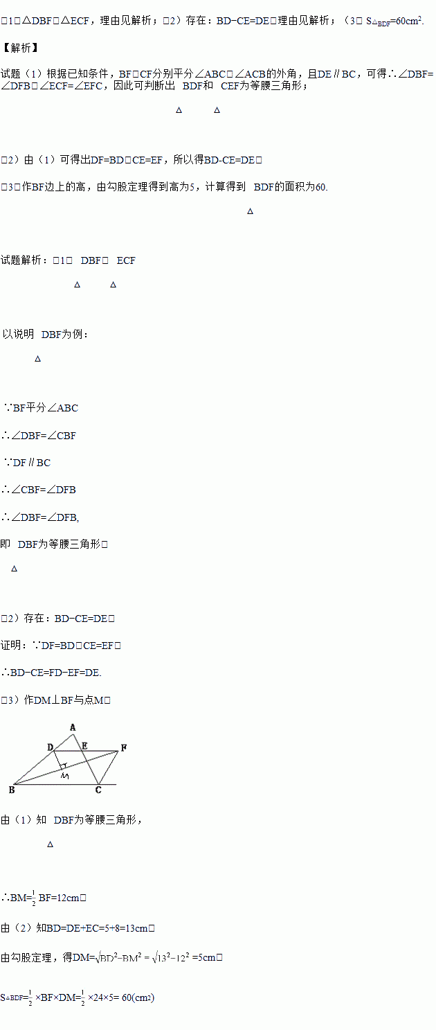 (3)若DE=5cm,CE=8cm,BF=24cm,求△BDF的面积.