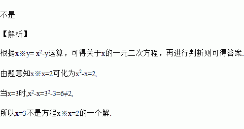 我们规定:x※y=x2-y.如:2※1=22-1,※2=()2-2.试判断x=3是否是方程x※x=2的一个解.