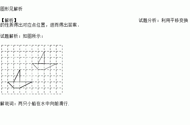 请把下面的小船图案先向上平移3格,再向右平移4格,最后为这个图案配上一句简短的解说词.