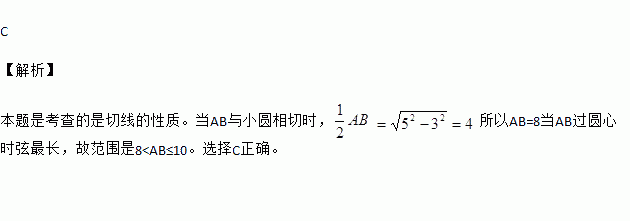 A. 8≤AB≤10 B. AB≥8 C. 8<AB≤10 D. 8<AB<10