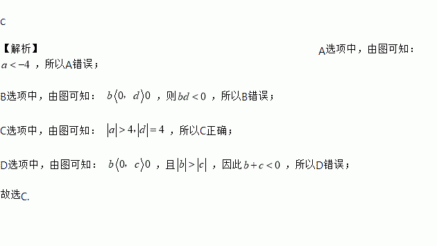 A. a>-4 B. bd>0 C. |a|>|d| D. b+c>0