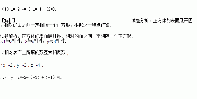 一个正方体的表面展开图如图所示,已知这个正方体的每一个面上都填有一个数字,且各相对面上所填的数字互为相反数,请写出x、y、z的值并计算x﹣y﹢z.
