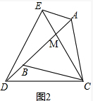 (2)根据(1)证出的△DBC≌△ACE,得出∠BDC=∠AEC,在△DMC和△AME中,根据AA证出△DMC∽△AME,得出∠EAM=∠DCM=60°,再根据∠DCA+∠CAE=∠DCE+∠ECA+CEA=180°+∠ECA,即可得出AE∥BC.