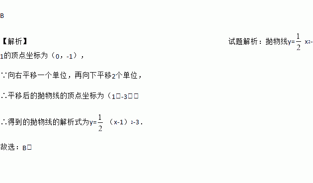 把抛物线 先向右平移1个单位,再向下平移2个单位,得到的抛物线的解析式为( )