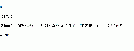 C. P为定值,I与R成正比例 D. P为定值,I2与R成正比例