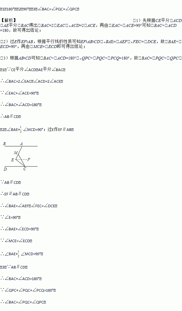 £¨3£©Èçͼ3£¬ÈôPΪÏß¶ÎACÉÏÒ»¶¨µã£¬µãQΪֱÏßCDÉÏÒ»¶¯µã£¬ÇÒABÓëCDµÄλÖùØÏµ±£³Ö²»±ä£¬µ±µãQÔÚÉäÏßCDÉÏÔ˶¯Ê±£¨µãC³ýÍ⣩£¬ÇëÄã²ÂÏë¡ÏCPQ+¡ÏCQPÓë¡ÏBACÓкÎÊýÁ¿¹ØÏµ£¬²¢ËµÃ÷ÀíÓÉ£®