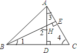 分析:由∠ABC=45°,AD是高,得出BD=AD后,证△ADC≌△BDH后求解.