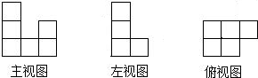 主视图有3列,每列小正方形数目分别为3,1,2;左视图有2列,每列小正方形数目分别为3,1;俯视图有3列,每列小正方形数目分别为2,2,1.