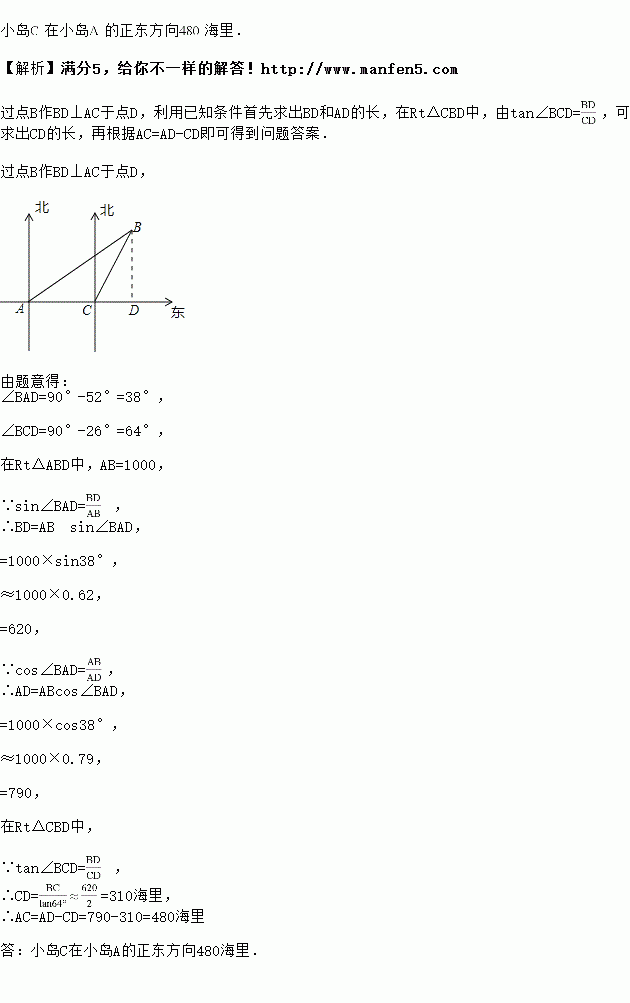 方向,在处测得小岛![]()