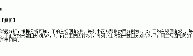 如图,甲、乙、丙图形都是由大小相同的小正方体搭成的几何体的俯视图,小正方形中的数字表示该位置小正方体的个数.其中主视图相同的是( )