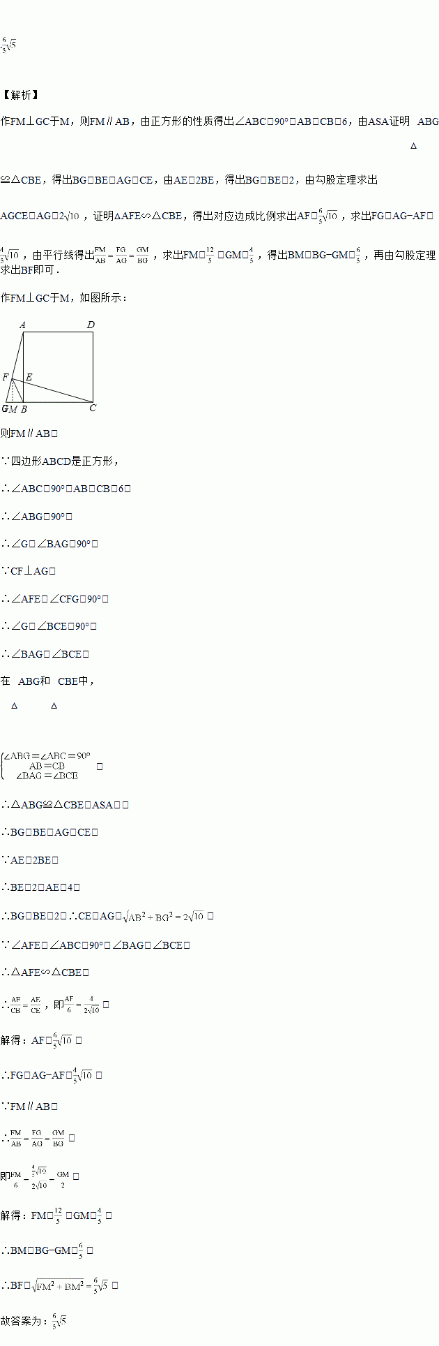 如图,正方形的边长为,点在边上,且,过点作直线的垂线交的延长线于点,连接,则的长为________.
